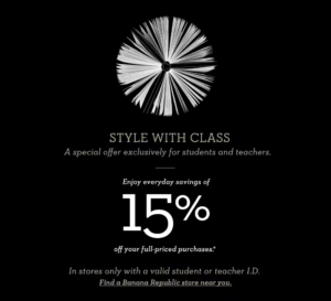 Credit: J. Crew - Banana Republic and Gap: Students and teachers receive 15% discount year-round for full-price in-store purchases.